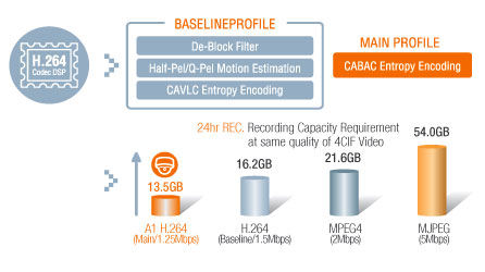 Features the latest H.264 video compression technology, a combination of high quality (D1) and real-time video (CIF)